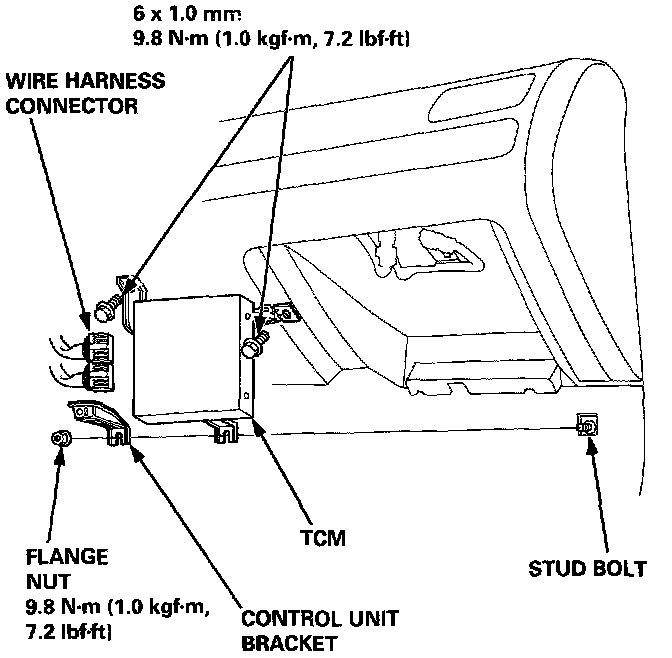 3. Remove the control unit bracket, then remove the TCM.