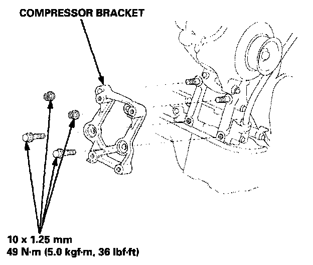 9. If necessary, remove the mounting bolts, mounting nuts and the compressor bracket.