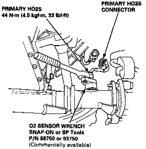 a. Disconnect the primary H02S connector, then remove the primary H02S.