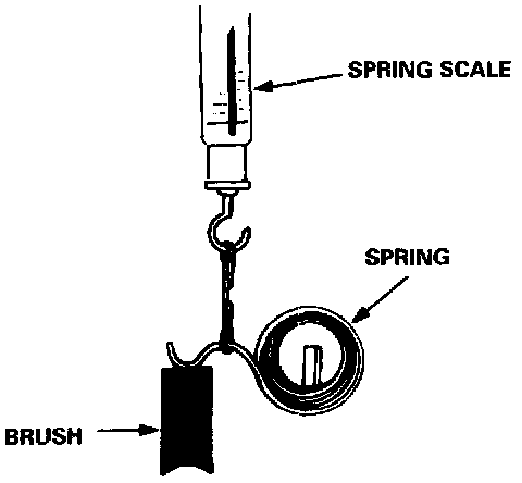 2. Insert the brush into the brush holder, and bring the brush into contact with the commutator, then attach a spring scale to the spring. Measure the spring tension at the moment the spring lifts off the brush.