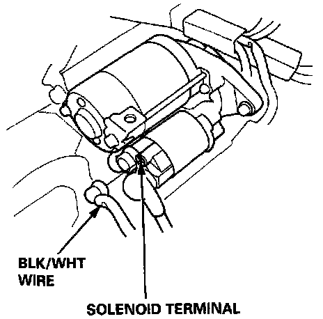 4. Unplug the connector (BLK/WHT wire and solenoid terminal) from the starter.