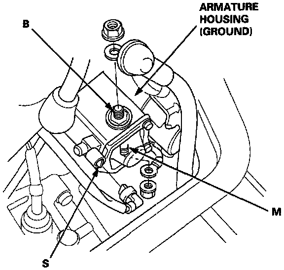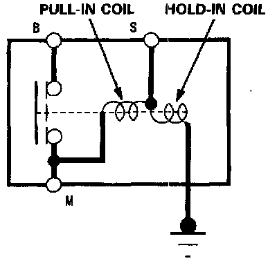 1. Check the hold-in coil for continuity between the S terminal and the armature housing (ground). The coil is OK if there is continuity.