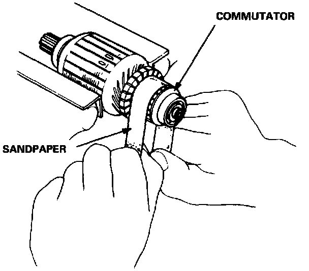 NOTE: To seat new brushes after installing them in their holders, slip a Strip of #500 or #600 sandpaper, with the grit side up, over the commutator, and smoothly rotate the armature. The contact surface of the brushes will be sanded to the same contour as the commutator.