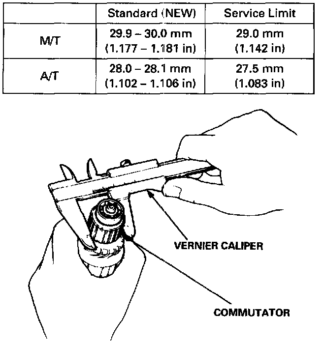 - If commutator diameter is below the service limit, replace the armature.