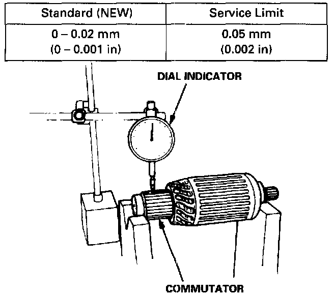 - If the commutator runout is not within the service limit, replace the armature.