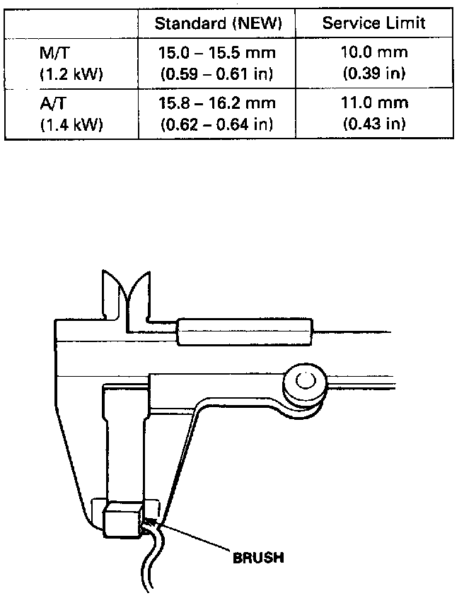 If it is not within the service limit, replace the armature housing assembly (M/T), or the brush holder assembly (A/T).