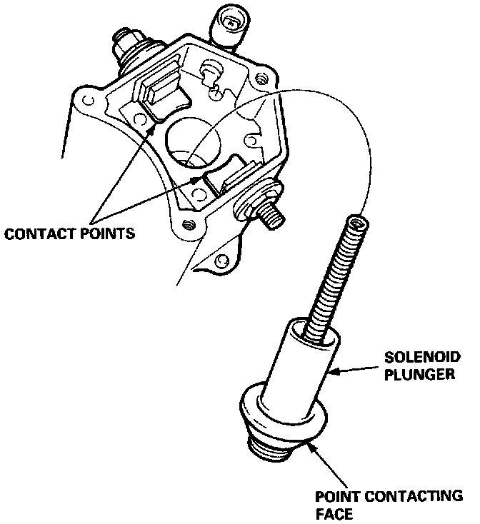 Check the contact points and the face of the starter solenoid plunger for burning, pitting or any other defects. If surfaces are rough, recondition them with a strip of #500 or #600 sandpaper.