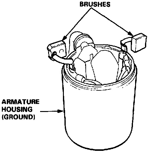 1. Check for continuity between the brushes. If there is no continuity, replace the armature housing.