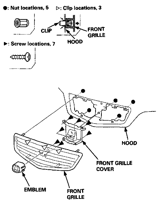 2. Detach the clips, then remove the front grille.
