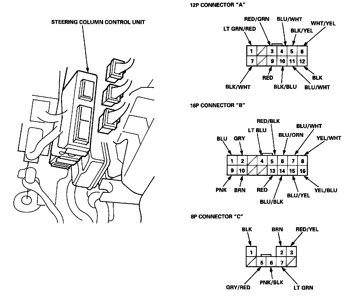 2. Disconnect the steering column control unit connectors.