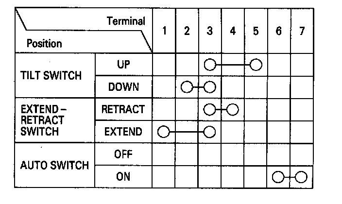 3. Check for continuity between the terminals in each switch position according to the table.