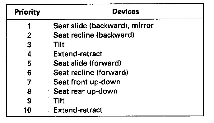 NOTE: There are two communication lines between the steering column control unit and the power seat control unit, and two communication lines between the steering column control unit and the power mirror control unit. If one communication line is faulty, the systems still functions via the other line. If the automatic adjustments stop working, but each component can still be adjusted manually, then both communication lines are faulty