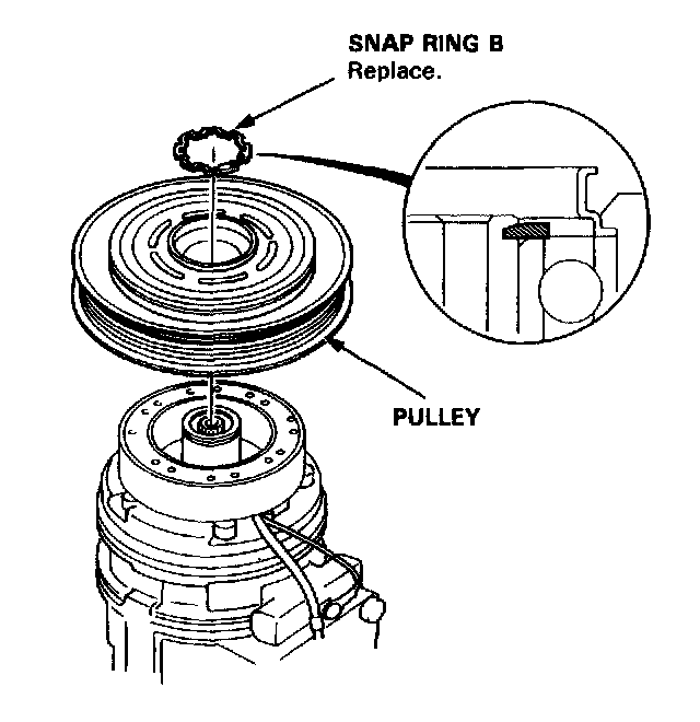 3. Remove the snap ring B with snap ring pliers, then remove the pulley.