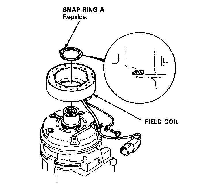 - Be careful not to damage the field coil and compressor during removal/installation.