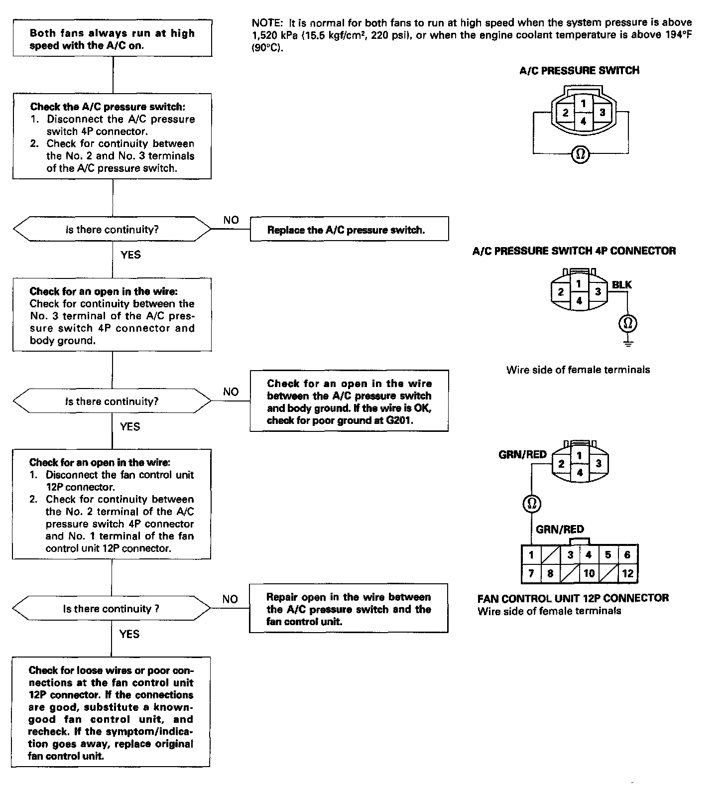 Refrigerant Pressure Sensor / Switch: Testing and Inspection