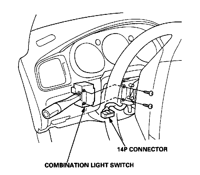3. Disconnect the 14P connector from the combination light switch, then remove the two screws and the switch.