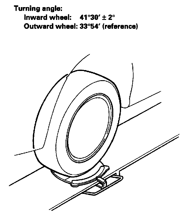 1. Turn the wheel right and left while applying the brake, and measure the turning angle of both wheels.