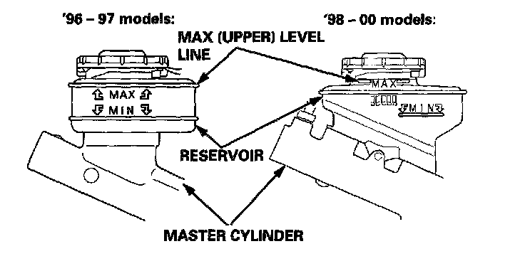 5. Refill the reservoir on the master cylinder to the MAX (upper) level line.