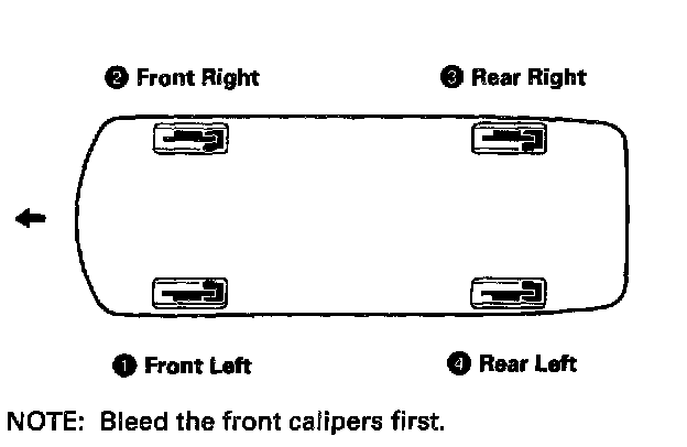4. Repeat the procedure for each wheel in the sequence shown until air bubbles no longer appear in the fluid.