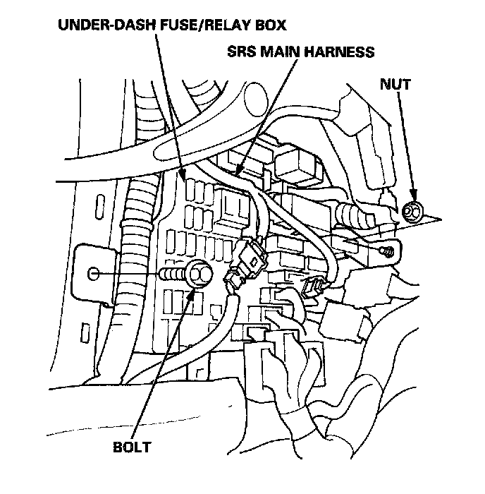 4. Disconnect the connectors from the under-dash fusel relay box, including the SRS main harness.