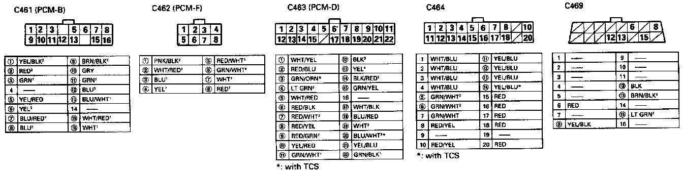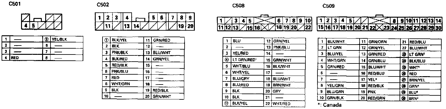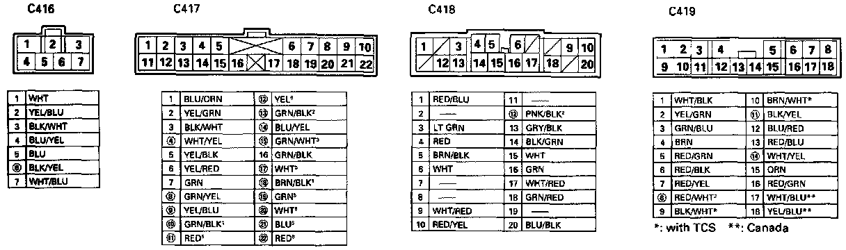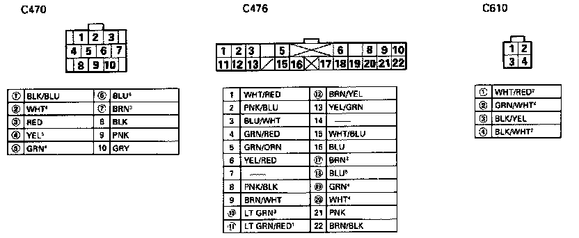 - Different wires with the same color have been given a number suffix to distinguish them (for example, YEL/BLK1 and YEL/BLK2 are not the same).