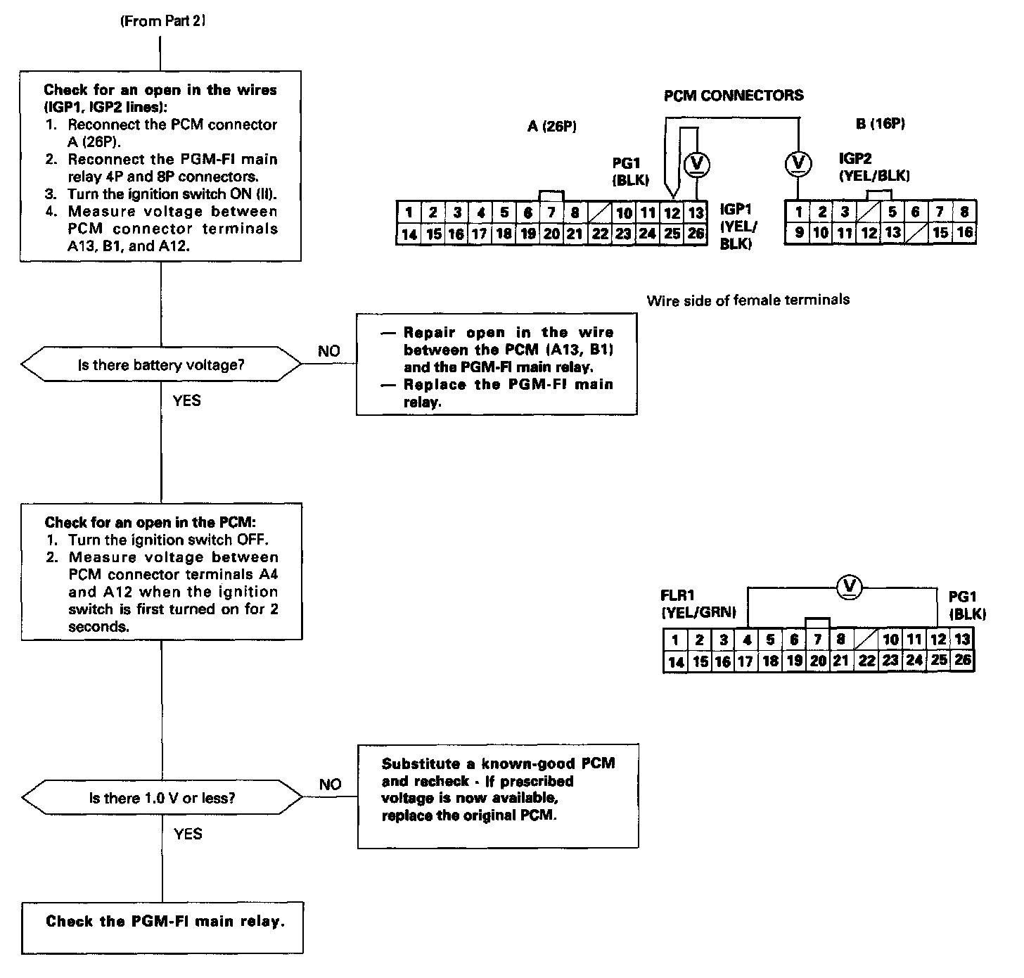 NOTE: If the engine starts and continues to run, the PGM-FI main relay is OK.