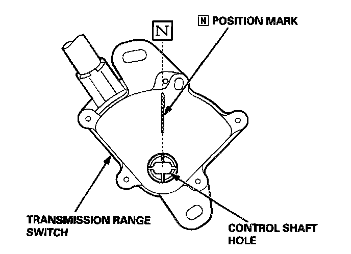 15. Install a new lock washer on the transmission range switch by aligning its projected tip with the N position mark on the transmission range switch as shown.