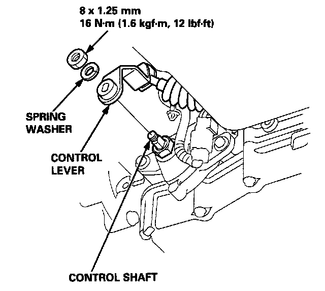 16. Tighten the locknut while holding the control shaft, then bend the lock tabs against the locknut.