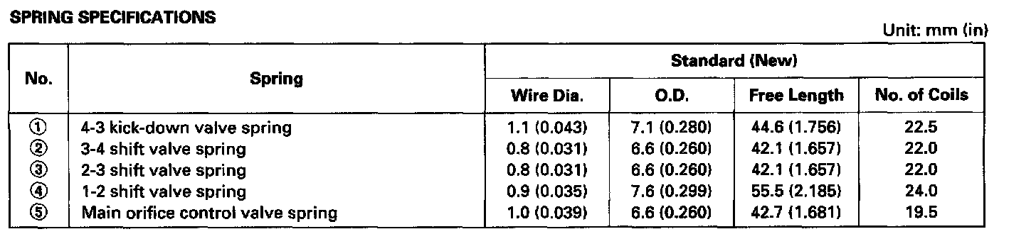 SPRING SPECIFICATIONS