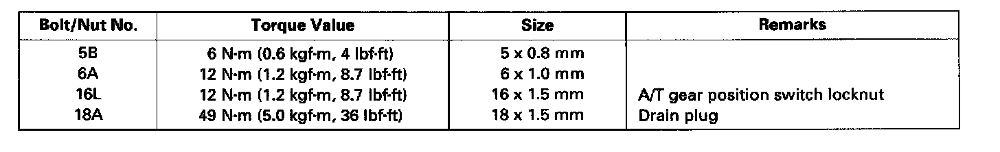 TORQUE SPECIFICATIONS