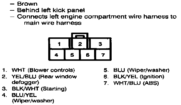 Example: The blower, rear window defogger, and the windshield wiper don't work. List all in-line and fuse box connectors in the blower controls circuit and then check the Connector View section (sample below). You find that C324 is common to the rear window defogger circuit and wiper/washer circuit, so you inspect C324 and find the problem, bent terminals.