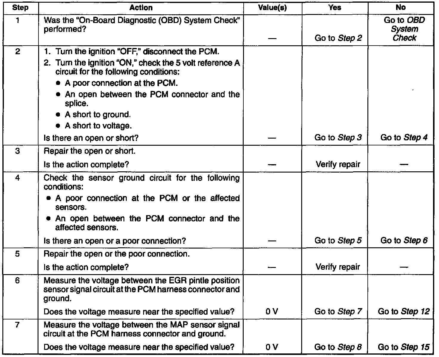 A short to voltage in one of the sensor input circuits may cause one or more of the following DTCs to be set: