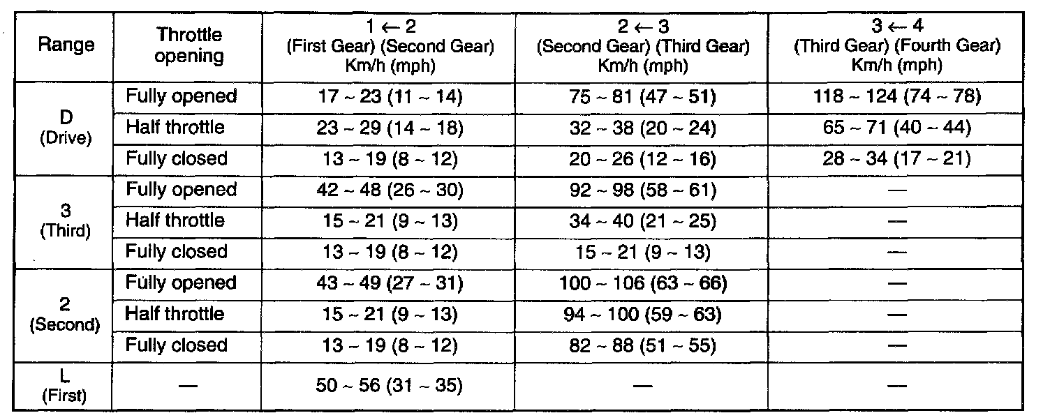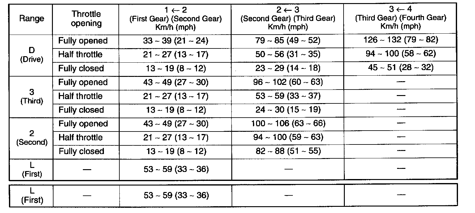 Shift Speed Chart