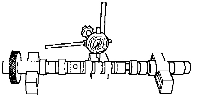 on V-blocks. Slowly rotate the camshaft and measure the runout with a dial indicator. Replace the camshaft if the runout exceeds the specified limit.