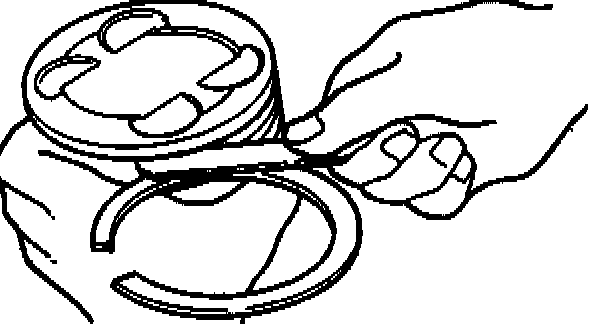 Measure the clearance between the piston ring groove and the piston ring with a feeler gauge. If the piston ring groove/piston ring clearance exceeds the specified limit, the piston must be replaced.