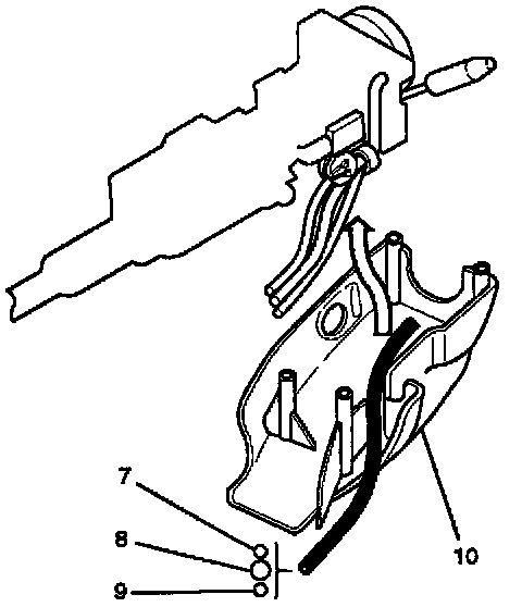 1. When installing the steering cowl(1 0), be sure to pass the harnesses through the route as shown so that the starter switch harness(7), the combination switch harness(8) and the inflator module harness(9) will not get caught.