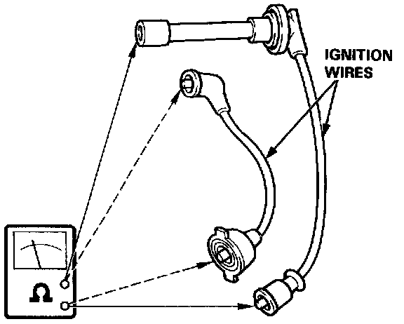 3. If resistance exceeds 25 K Ohms, replace the ignition wire.