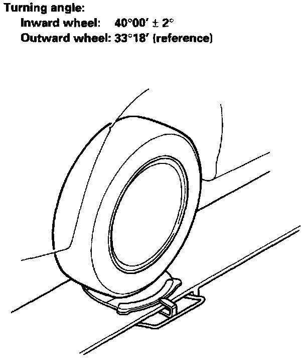 2. IF the turning angle is not within the specifications, check for bent or damaged suspension components.