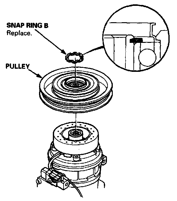 3. Remove the snap ring B with snap ring pliers, then remove the pulley.