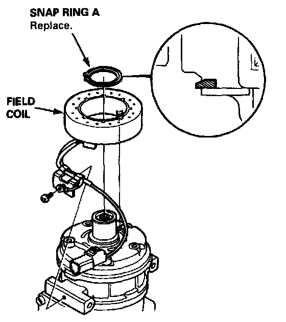 - Be careful not to damage the field coil and compressor during removal/installation.