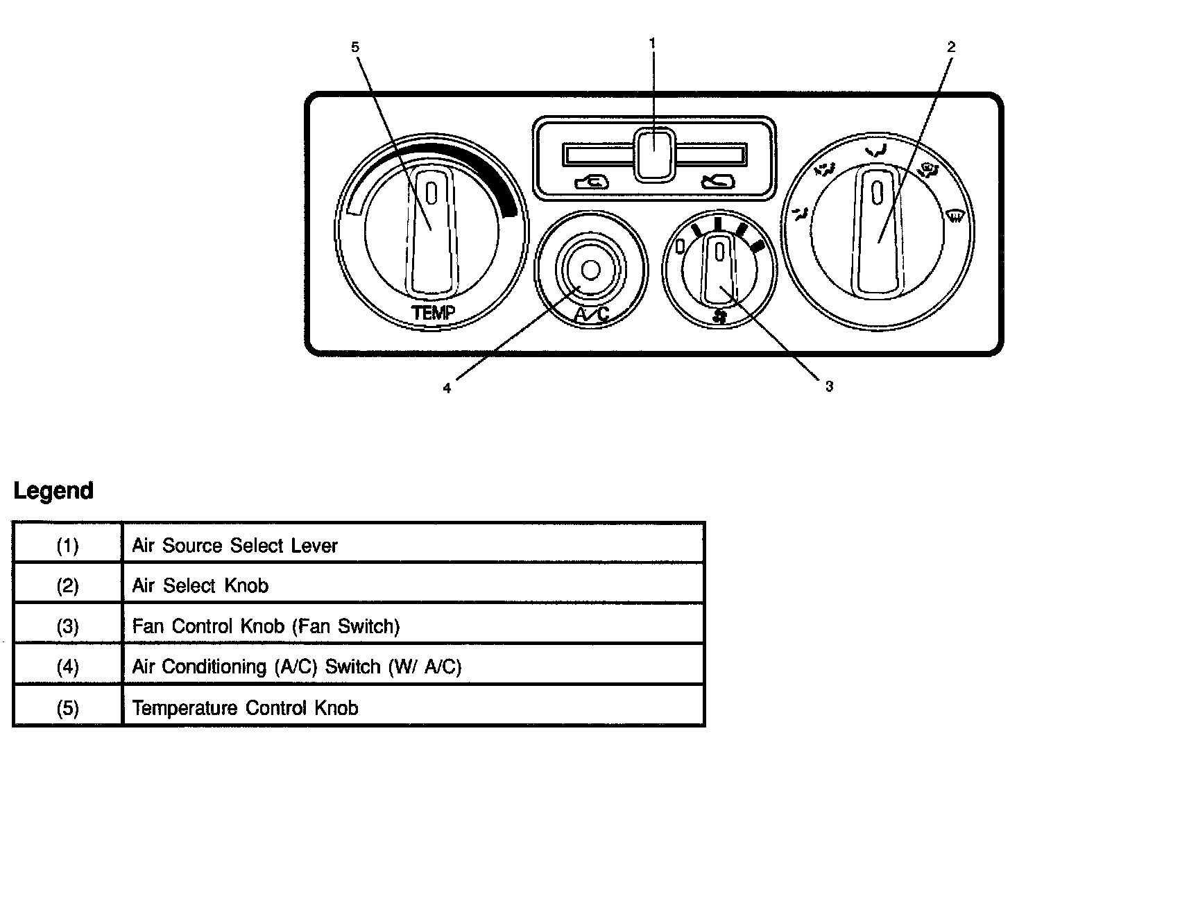 The vehicle has cable-type-control to control the mode and temperature of the heater unit and the mode door for the air source of the blower assembly. The fan control is used to control the amount of air sent out by the resistor at four levels from LOW to HIGH.
