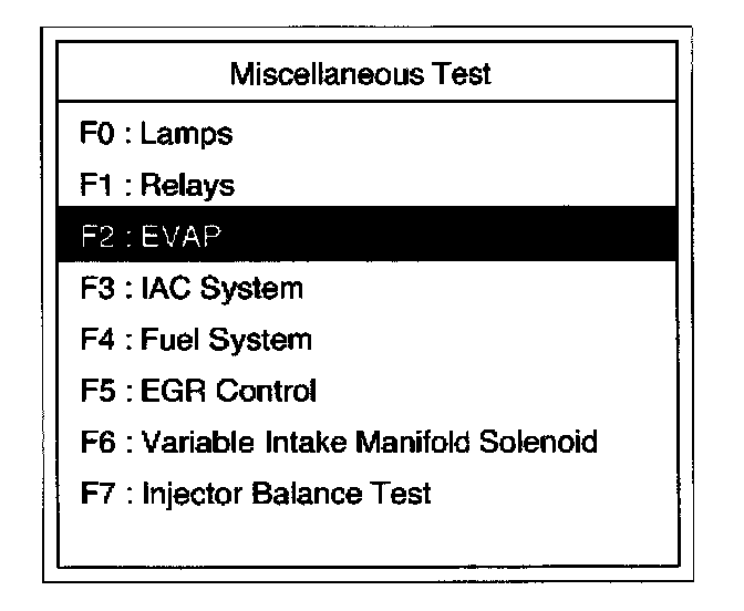 4. Select F2: EVAP Test in the Miscellaneous Test.