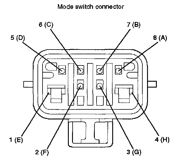 d. Connect multimeter (resistance mode) to terminals 1 (E) and 4(H) on mode switch connector.