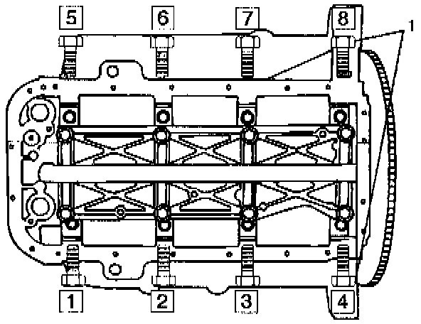 Tighten crankcase bolts in sequence shown in the illustration.