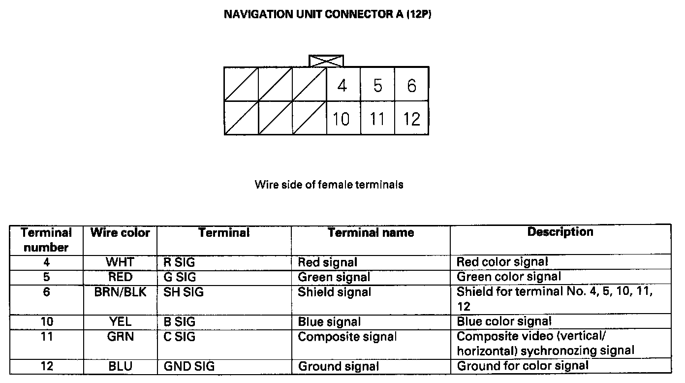 Navigation Unit Inputs and Outputs For Connector A (12P)