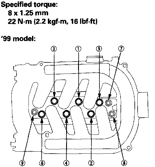 Tighten the bolts and nuts sequentially in two or three steps. Always use a new intake manifold gasket.