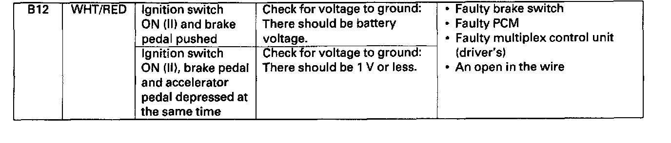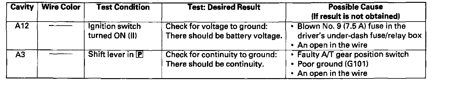 NOTE: If the shift lock solenoid clicks when the ignition switch is turned ON (II) while depressing the brake pedal with the shift lever in P position, the shift lock system is OK. If the shift lever cannot be shifted from P position, test the A/T gear position switch.