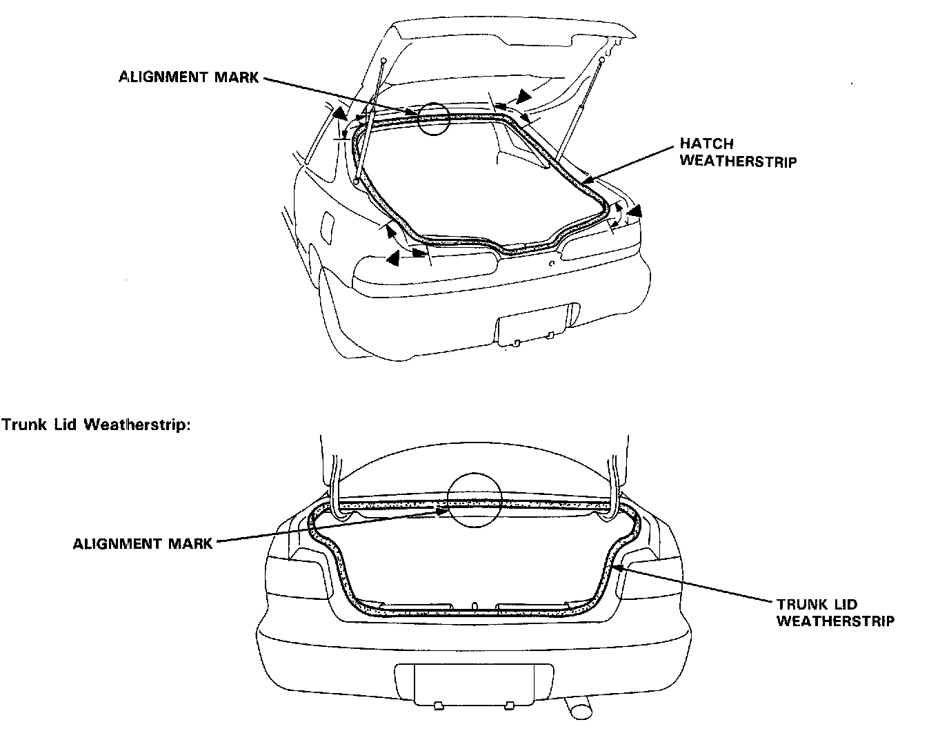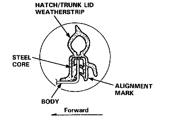 When installing the hatch or trunk lid weatherstrip, align it with the alignment mark on the hatch or trunk lid opening.