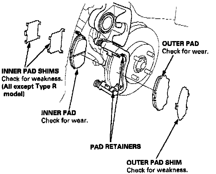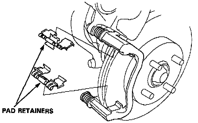 3. Remove the pad shim, pad retainers and pads.
