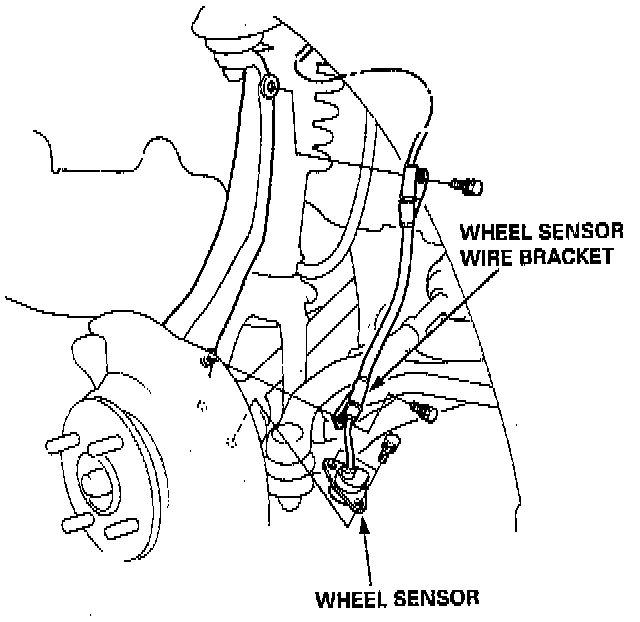 11. Remove the wheel sensor wire bracket, then remove the wheel sensor from the knuckle (for vehicles with ABS).